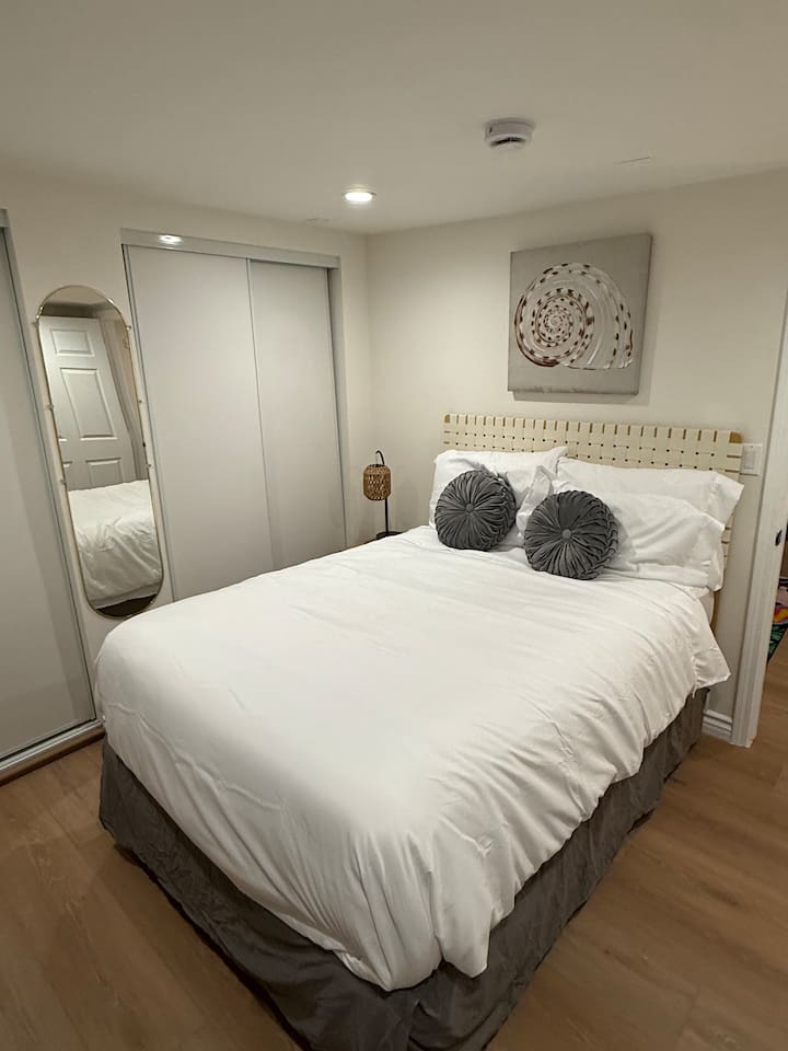 Bedroom: A peaceful bedroom with a comfortable queen-sized bed for a restful night's sleep.
